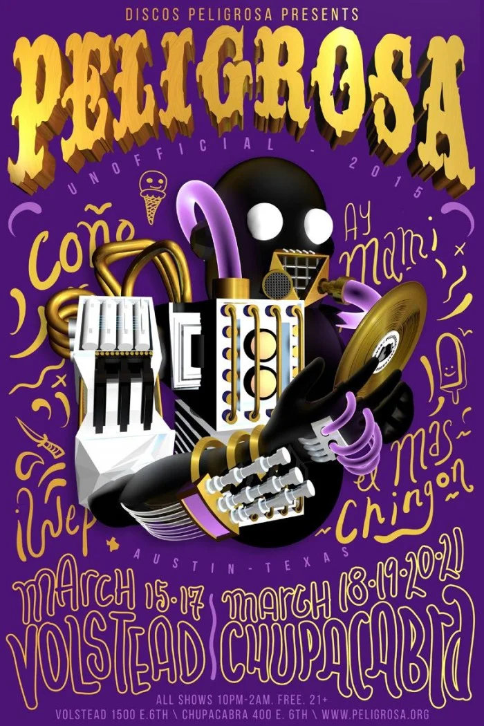 Last but not least, you can always get turnt to the cumbia/trap/hiphop/all things danceable mash up mixes of the Peligrosa djs who will be playing unofficially all week. Tuesday will be their SXSW opening ceremony at The Volstead, and Wednesday, Thursday, Friday and Saturday they will be posted up at Chupacabra Cantina.