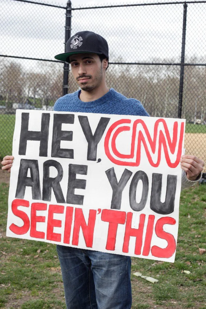 We attended Thurday’s South Bronx event to talk to supporters of a campaign that many assert hasn’t received the mainstream media coverage it deserves. One attendee’s poster read, “Hey, CNN are you seein’ this?”